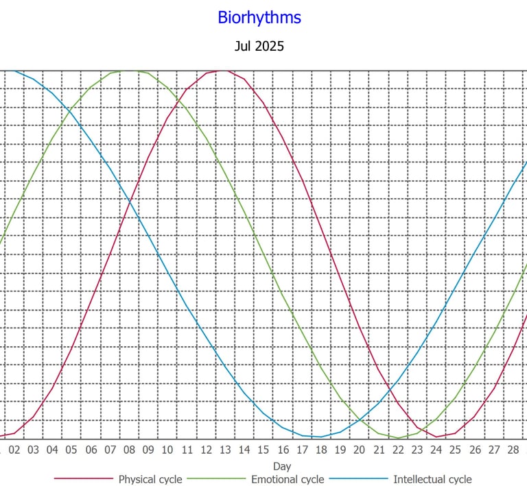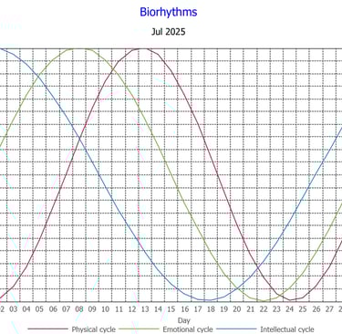 Biorhythms: Discover your personal rhythm with a biorhythm chart showing your best days for physical vitality, emotional ease, and mental focus